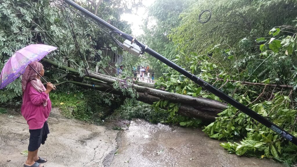 Babinsa bersama warga sekitar bergerak cepat untuk melakukan pembersihan, menggunakan peralatan manual guna memotong dan menyingkirkan batang pohon yang melintang di jalan. Upaya ini dilakukan untuk memastikan akses masyarakat kembali normal.