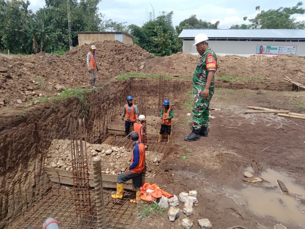 Kegiatan yang dimulai sekitar pukul 13.00 WIB tersebut dilakukan sebagai bagian dari tugas pembinaan teritorial serta memastikan proses pembangunan fasilitas pendidikan berjalan dengan aman dan lancar.