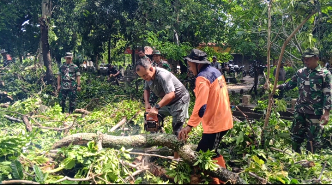 Selanjutnya, seluruh personel Kodim 0620/Kabupaten Cirebon bersama tokoh masyarakat, tokoh agama, tokoh pemuda, dan warga melaksanakan pemotongan pohon besar, ranting-ranting, serta pembersihan pendopo yang rusak akibat tertimpa pohon tumbang, dengan dibantu oleh BPBD Kabupaten Cirebon.