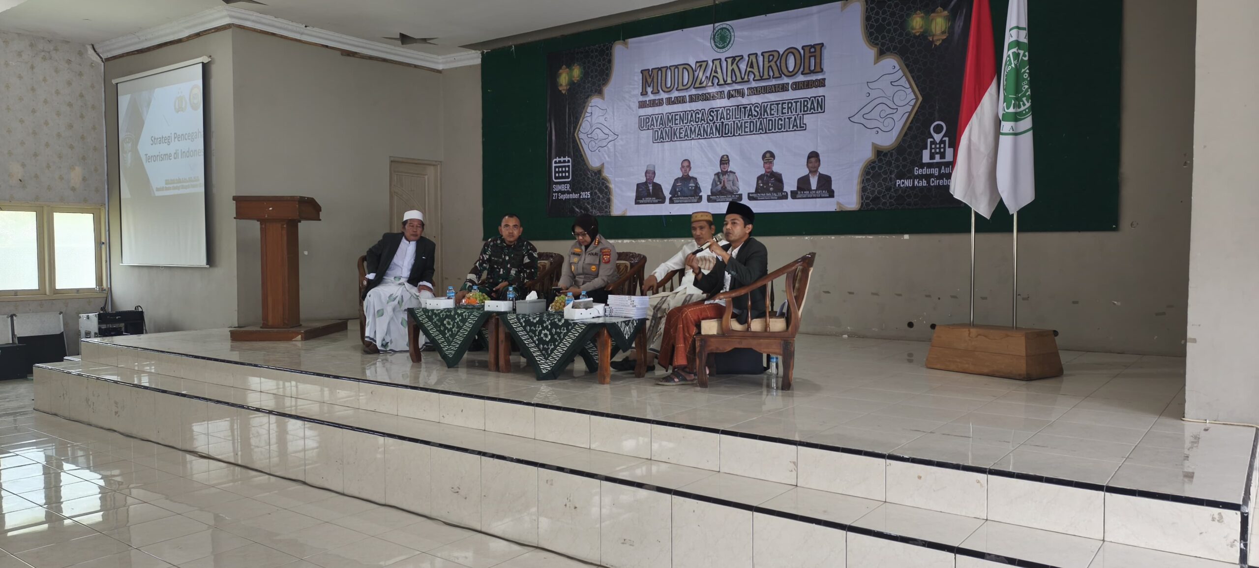Cirebon, 27 September 2025 – Komandan Kodim 0620/Kab. Cirebon, Letkol Inf Mukhammad Yusron, S.A.P., menghadiri kegiatan Mudzakaroh Majelis Ulama Indonesia (MUI) Kabupaten Cirebon yang mengangkat tema “Upaya Menjaga Stabilitas Ketertiban dan Keamanan di Media Sosial”.