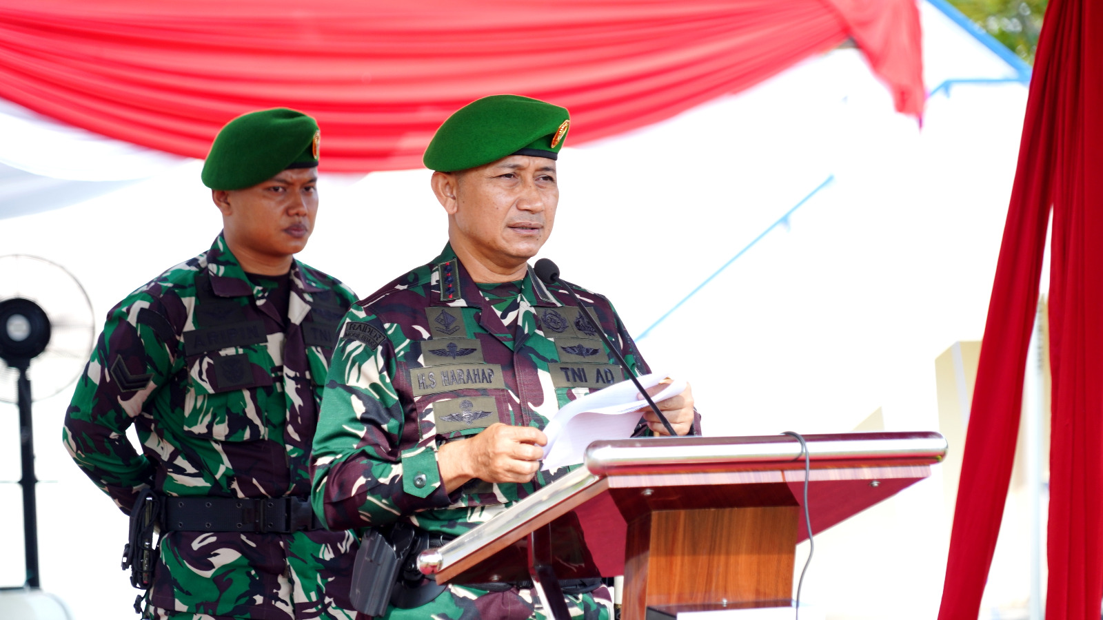 Indramayu — Senin, 1 Desember 2025, Komandan Korem 063/Sunan Gunung Jati Kolonel Inf Hista Soleh Harahap, S.I.P., M.I.P., Han., memimpin Apel Kesiapsiagaan Pengamanan Instalasi Strategis Subholding Refinery and Petrochemical PT Kilang Pertamina Internasional (KPI) RU VI Balongan di Lapangan Bola Perum Bumi Patra, Desa Pekandangan, Kecamatan Indramayu.