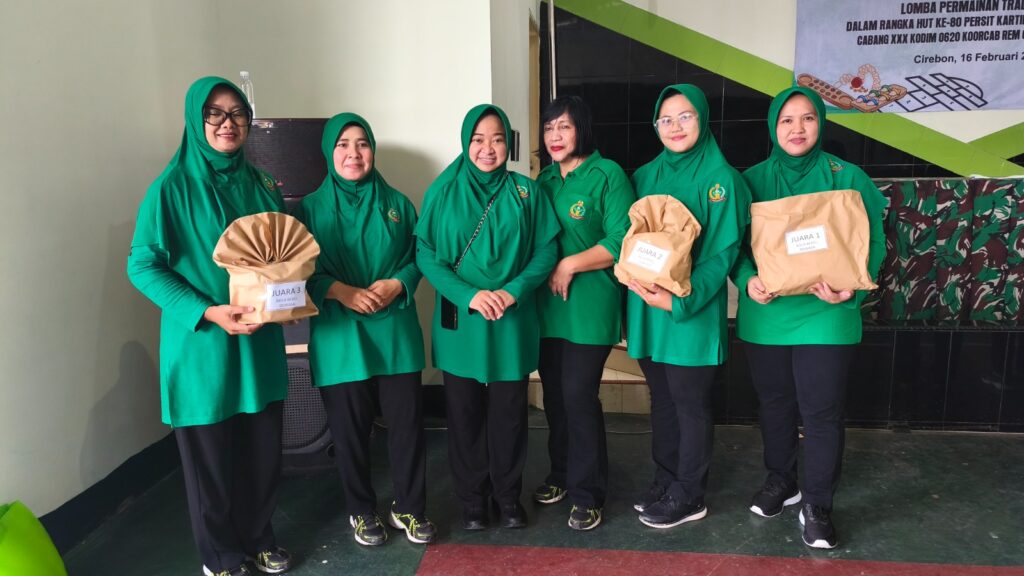 Cirebon, 15 Februari 2026 – Dalam rangka memperingati Hari Ulang Tahun (HUT) ke-80 Persit Kartika Chandra Kirana, Persit Kartika Chandra Kirana Cabang XXX Kodim 0620/Kab. Cirebon menggelar lomba permainan tradisional yang berlangsung meriah dan penuh kebersamaan. Kegiatan ini diikuti oleh ibu-ibu Persit serta anak-anak anggota Kodim 0620/Kab. Cirebon.